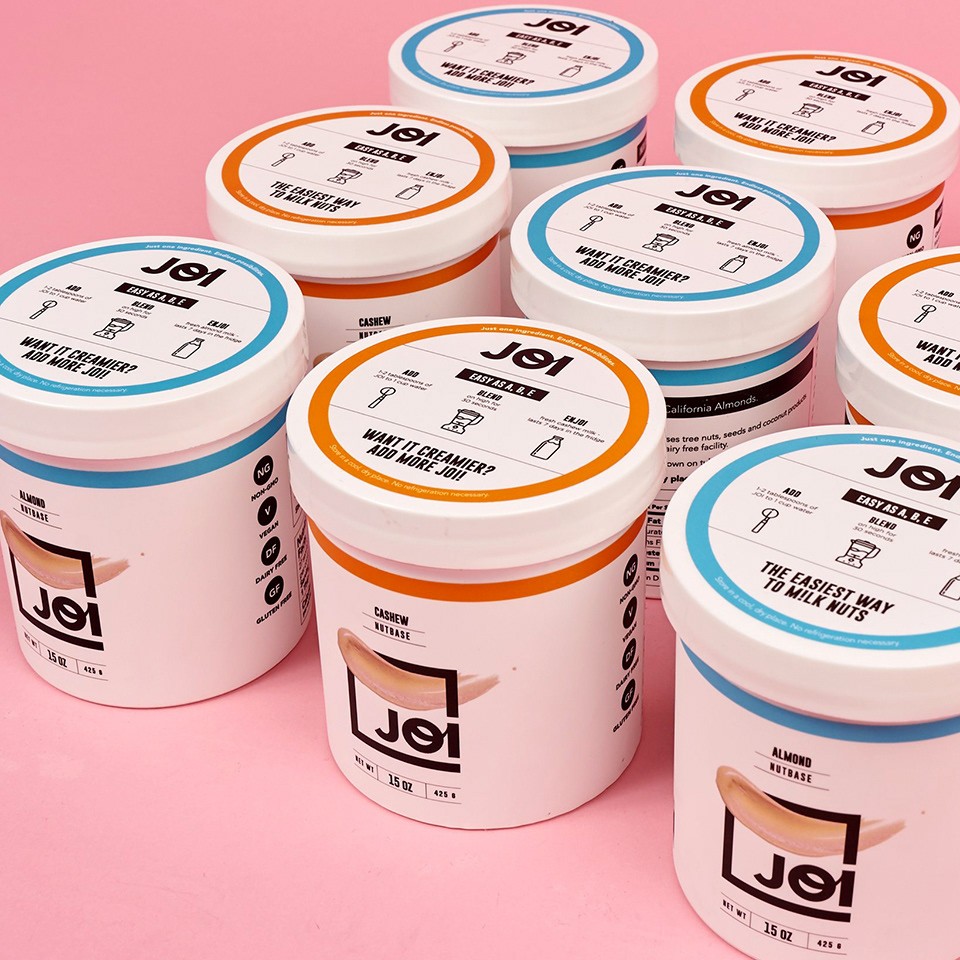 Packaging design for JOI's Nutmilk bases